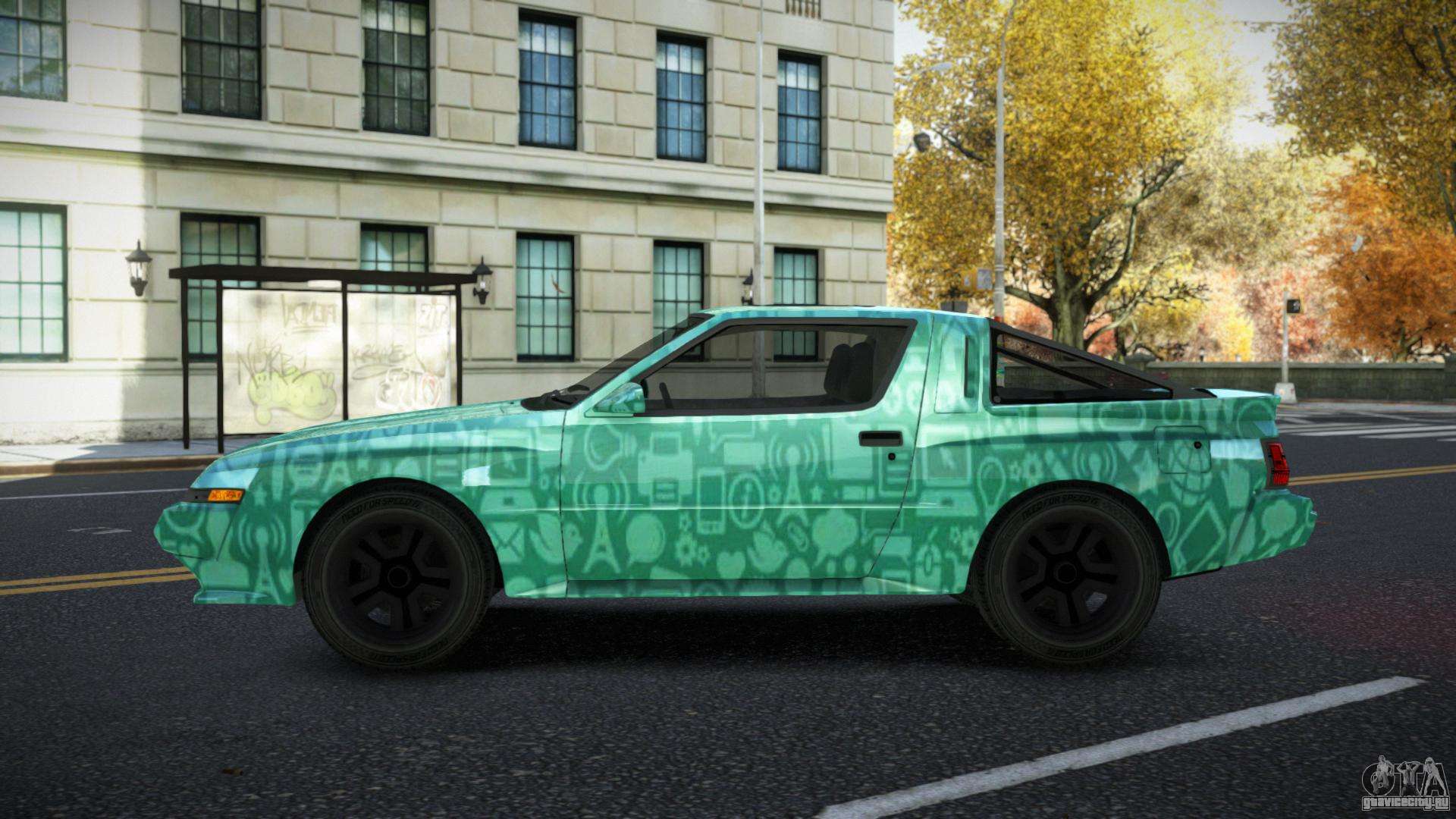Чтобы бесплатно скачать мод на авто Mitsubishi Starion Reyph S5 для GTA 4, нужно просто кликнуть по ссылкам внизу страницы. Наш автоматизированный инсталлятор поможет Вам в два нажатия установить мод на замену Banshee, или Вы можете выбрать любой другой стандартный транспорт в игре.