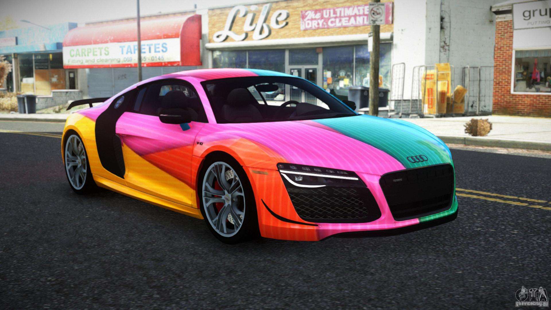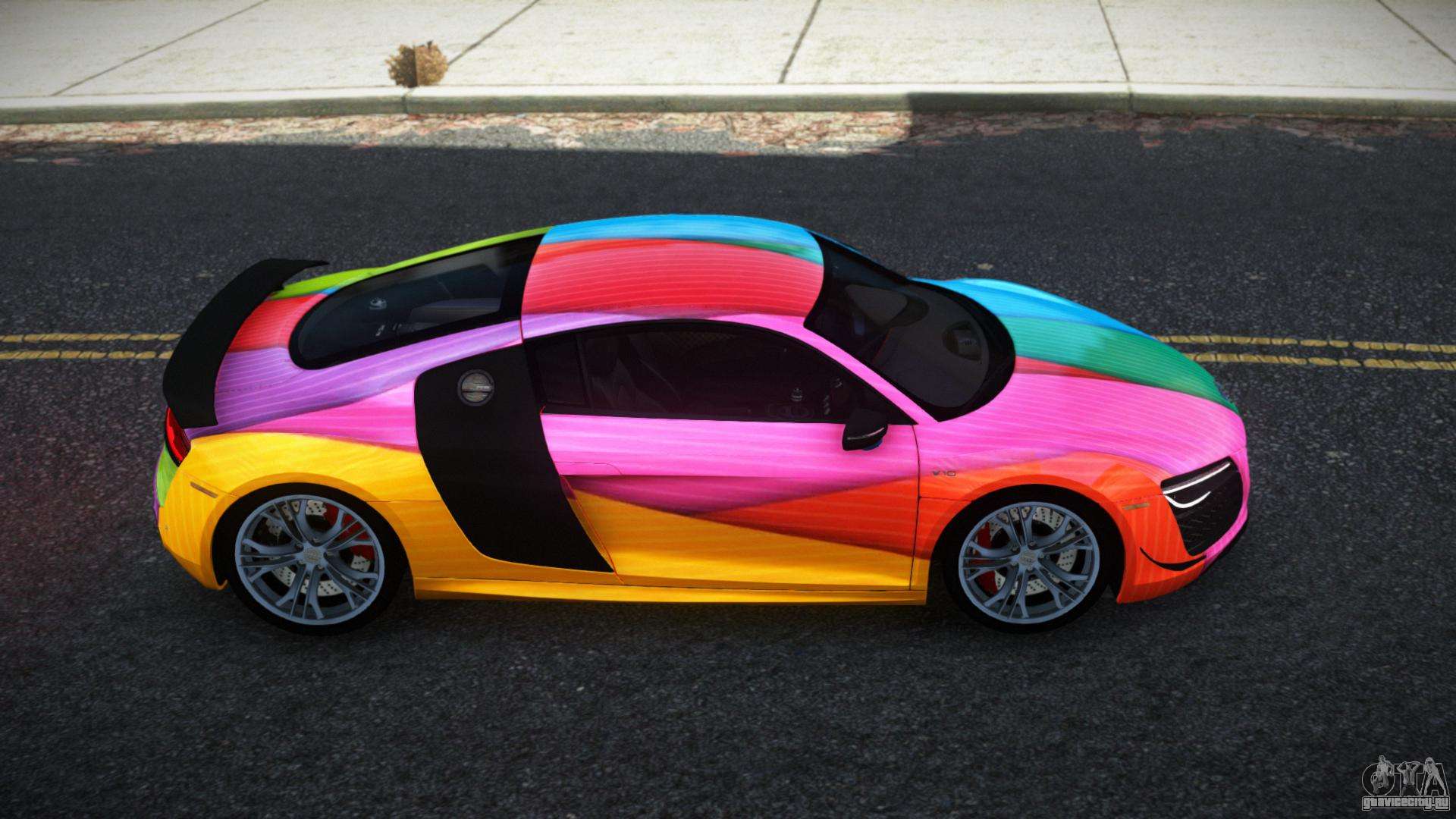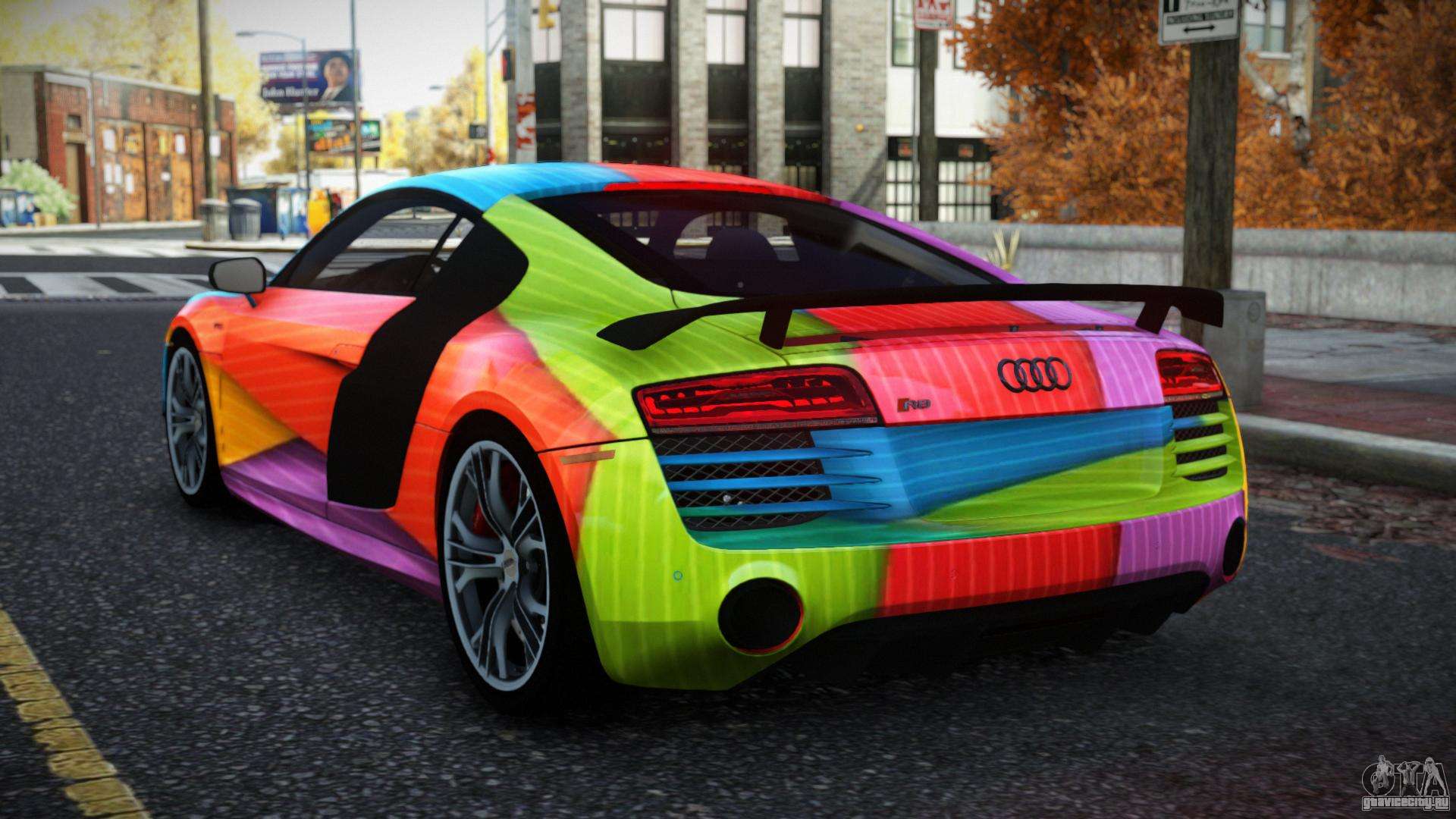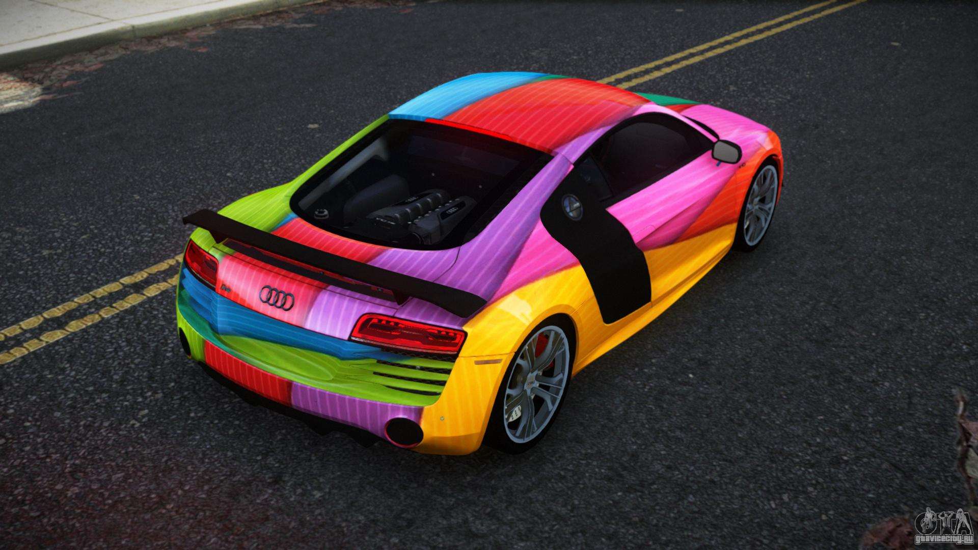 Вы можете бесплатно скачать мод на авто Audi R8 Saria S5 для GTA 4 кликнув по ссылке ниже. Автоматическая установка, по умолчанию на замену Banshee, или с помощью инсталлятора можете выбрать любой другой стандартный авто из игры.