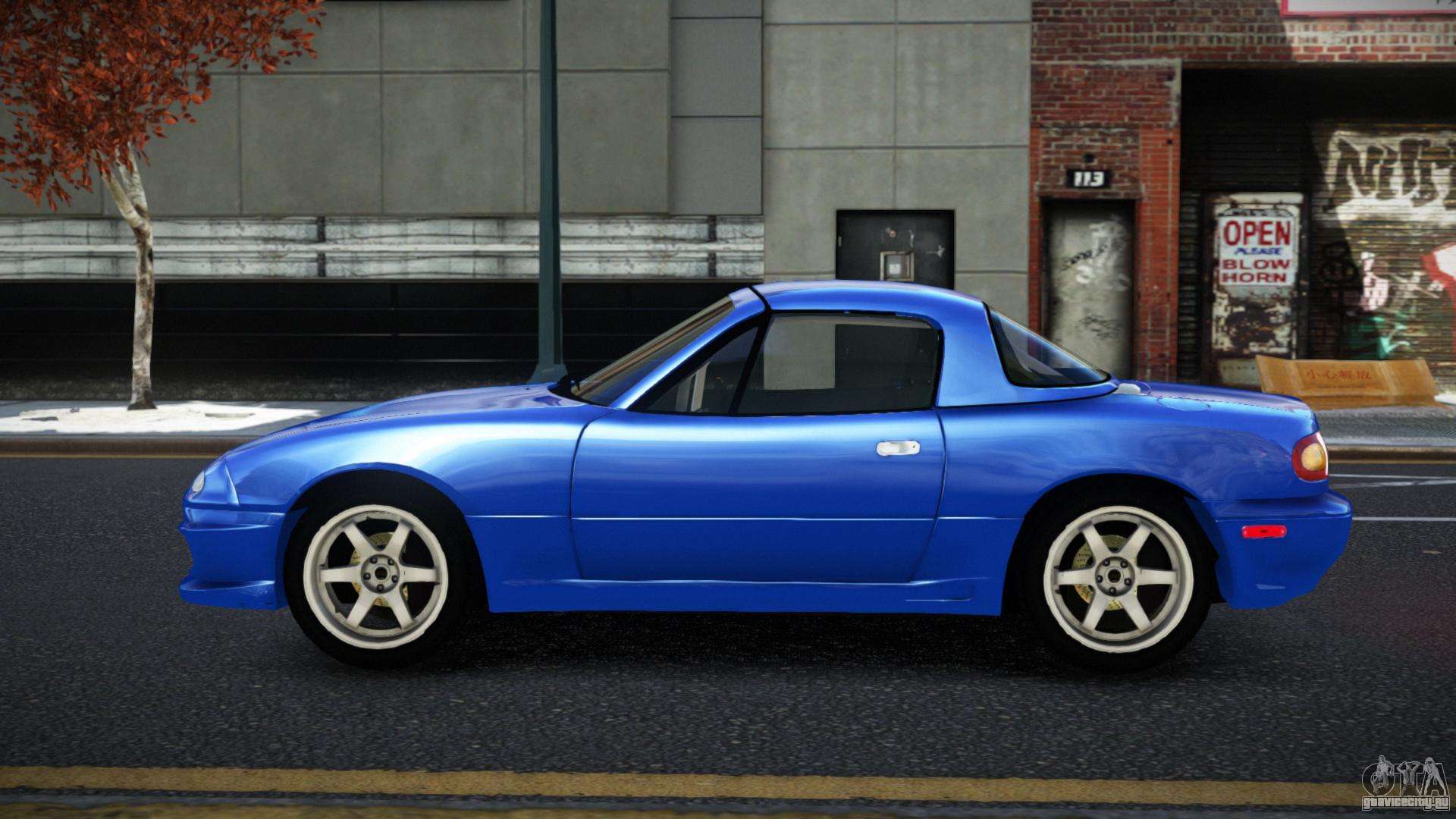 Чтобы бесплатно скачать мод на авто Mazda MX-5 Yewuliwex для GTA 4, нужно просто кликнуть по ссылкам внизу страницы. Наш автоматизированный инсталлятор поможет Вам в два нажатия установить мод на замену Futo, или Вы можете выбрать любой другой стандартный транспорт в игре.