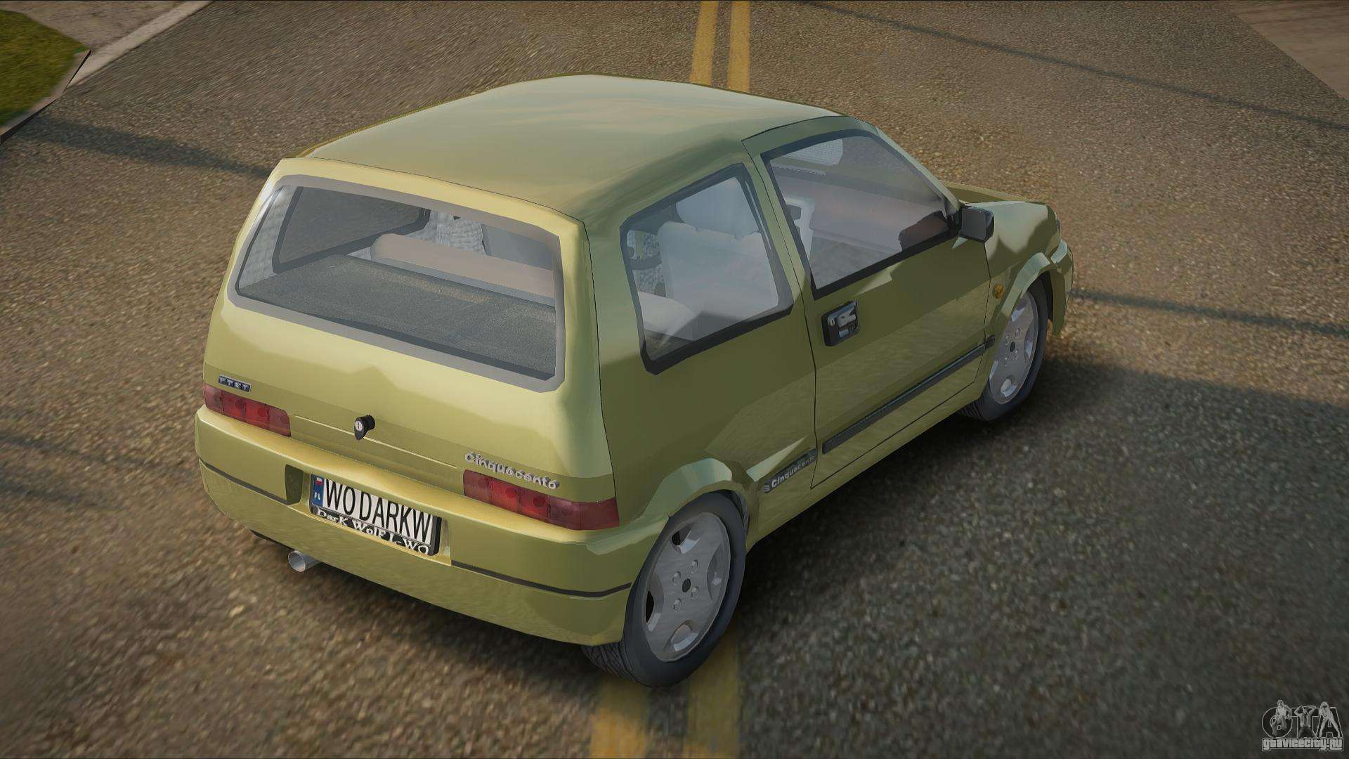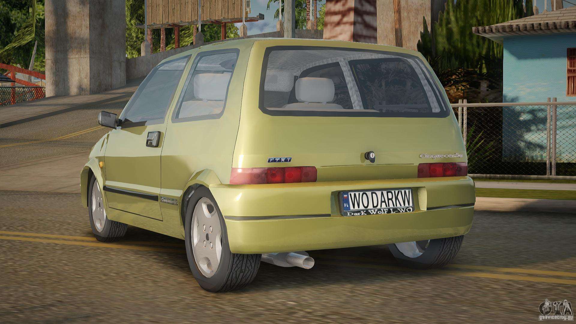 По ссылкам ниже Вы можете бесплатно скачать мод на автомобиль Fiat Cinquecento V1.0 для GTA San Andreas. По умолчанию мод автоматически заменяет авто на Manana. С помощью нашего инсталлятора Вы можете заменить авто на другой стандартный транспорт.